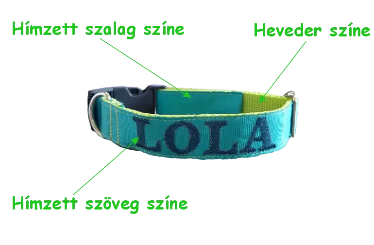 - A nyakörv mérete erősen befojásolja a felhímezhető szöveg hosszát, így 7-8 betű lehet a szöveg hossza.