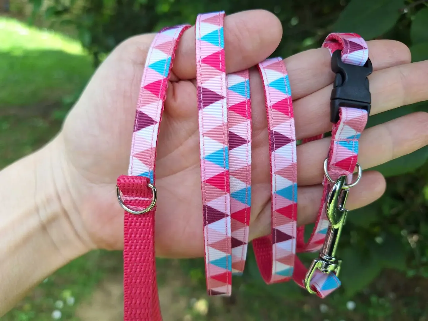 Ezt a nyakörvet kölyök kutyáknak illetve kis testű kutyáknak ajánljuk. Szoktatáshoz, első sétákhoz. kitűnő választás. Ez a cuki nyakörv rózsaszín mozaik mintás szalaggal és rózsaszín hevederrel van varrva. De a felsorolt heveder színek közül bármelyikkel kérhető.